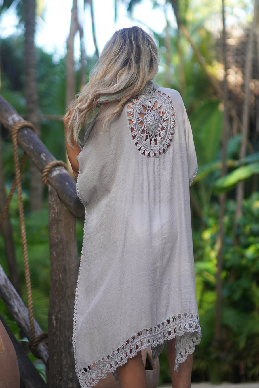 Fog colored swimsuit cover up. Beautiful lightweight rayon fabric with dream catcher design.